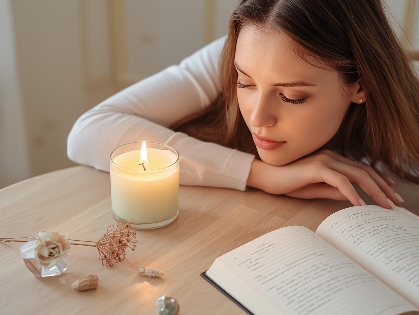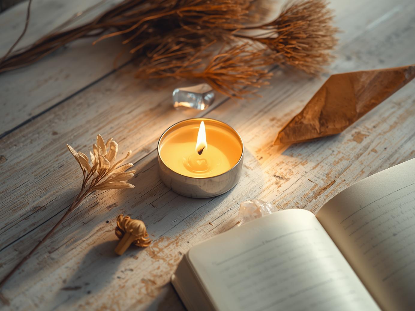 - Allume une bougie avec une intention claire : gratitude, paix, amour, libération.